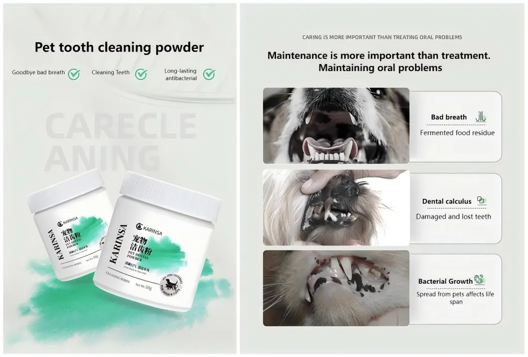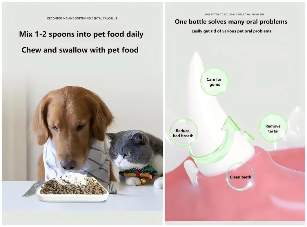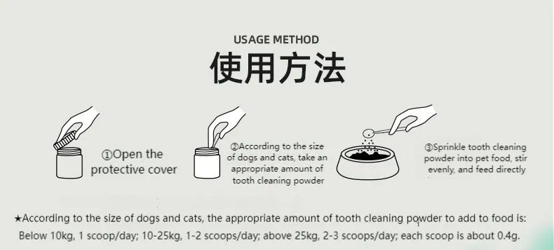 Pet Dental Powder (Beef Flavor) is a specially designed oral-care product for pets. It effectively solves oral problems such as bad breath, plaque, and tartar. Suitable for dogs and cats of all ages.